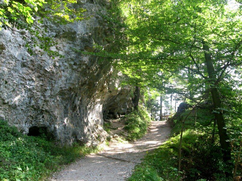 Weiter geht’s zu unserer letzten Station, der Enzianhütte (1.041 m ü.d.M.). Dafür wandern wir etwa 10 Minuten zurück, bis wir zum Hinweisschild “Enzianhütte” gelangen, welchem wir folgen. Nun geht es nur mehr abwärts, über wurzlige Pfade durch den schattigen Wald. Vorbei an der Enzianhütte folgen wir dem Weg durch die Mühlauer Klamm Richtung Hungerburg, die wir nach einer weiteren Stunde erreichen.