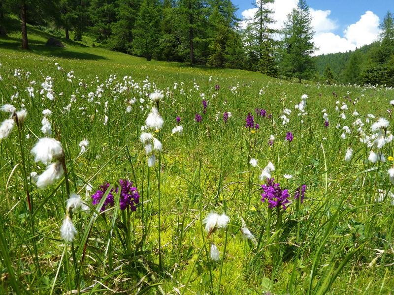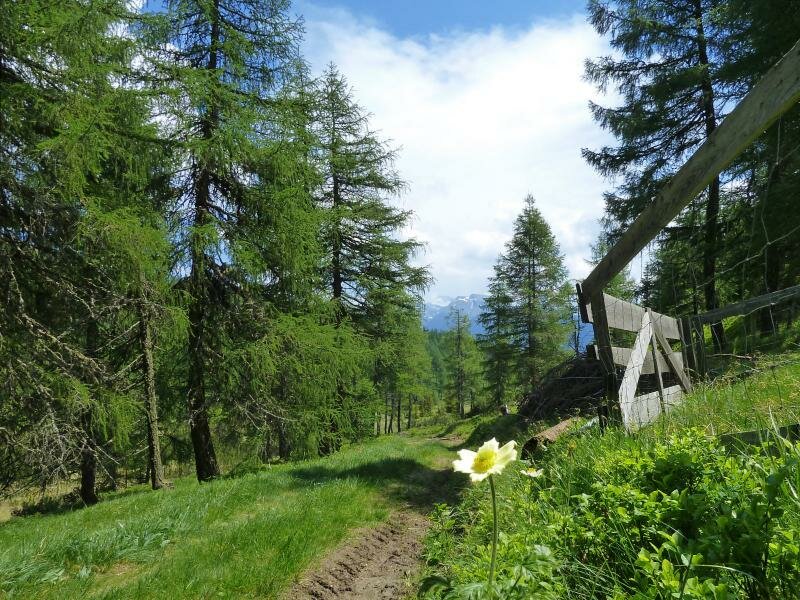 Am Ende der Runde führt der Schöpfungsweg wieder zum Wallfahrtsort zurück, hier folgen wir nun dem Weg zu den Gleinser Mähdern. Die Forststraße führt durch den Wald und an Weiden vorbei und führt als Pfad zu den schönen Feuchtwiesen - jetzt im Juni blühen verschiedene Orchideen, Trollblumen, Anemonen und unzählige weitere Kräuter. Wir folgen der Route “Rund ums Waldraster Jöchl”, die uns über die Ochsenhütte (1.582 m ü.d.M.) zum Ausgangspunkt zurück führt, wo diese schöne Rundtour endet.