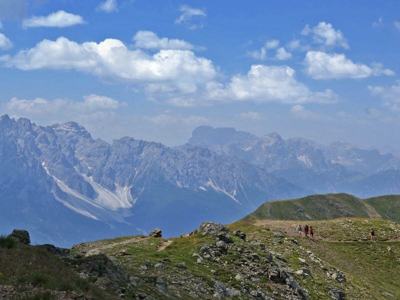 Am Astatt Sattel angekommen, beschließen wir, einen Abstecher zum Thurntaler See zu machen, der 1 km weiter südwestlich liegt. Auf dem Weg dorthin bieten sich Ausblicke auf die Pragser, Sextner und Lienzer Dolomiten, auf den Karnischen Kamm, die Deferegger Alpen und ganz im Norden bis zur Venedigergruppe. Für den Rückweg folgen wir ab dem Astatt Sattel dem Pfad Nr. 10B in Richtung Gadein / Bergstation, der uns noch Blicke auf das Hochpustertal und den Eingang ins Lesachtal öffnet, bevor es mit der Bahn wieder hinunter nach Sillian geht.