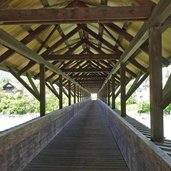 Der nun asphaltierte Weg führt an den Mooshöfen vorbei zur Kirche Mariä Heimsuchung. Am Waldweg geht es dann hinab ins Zimmertal. Die Forststraße bringt uns in die Umgebung von Volderwald, wo wir die Talseite wechseln und, dem Wegweiser "Hall in Tirol" folgend, über die Haller Innbrücke in das für seine Münzpräge bekannte Städtchen gelangen. Dazu überqueren wir nach der Unterführung der Inntal-Autobahn den Inn über die Rad- und Fußgänger-Holzbrücke und gelangen direkt ins sehenswerte Zentrum von Hall, wo unsere Frühlingswanderung endet. Zurück zum Ausgangspunkt kann man auch mit Zug und Bus (via Innsbruck Hbf) gelangen.