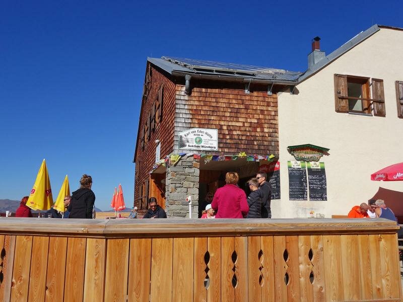 Der letzte Abschnitt zur Karl-von-Edel-Hütte verläuft am steilen Hang in mehreren Serpentinen. So erreichen wir schließlich unser Ziel auf über 2.240 m Meereshöhe. Nach der Einkehr zum Mittagessen geht es dann wieder zurück zur Bergstation. Dafür kann man im oberen Abschnitt auch die alternative Route 514 wählen.