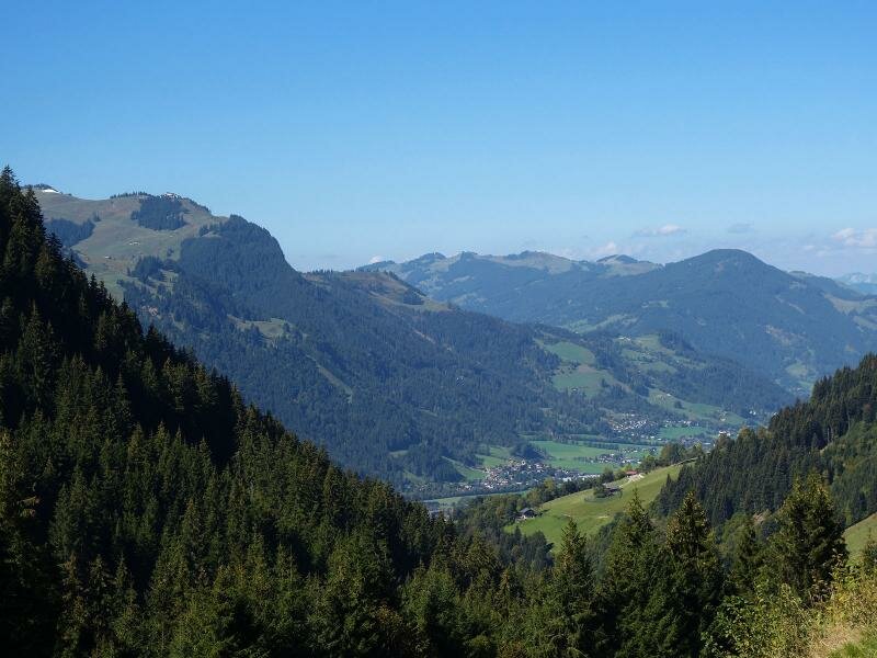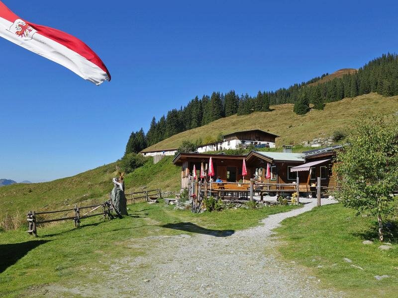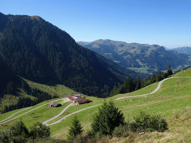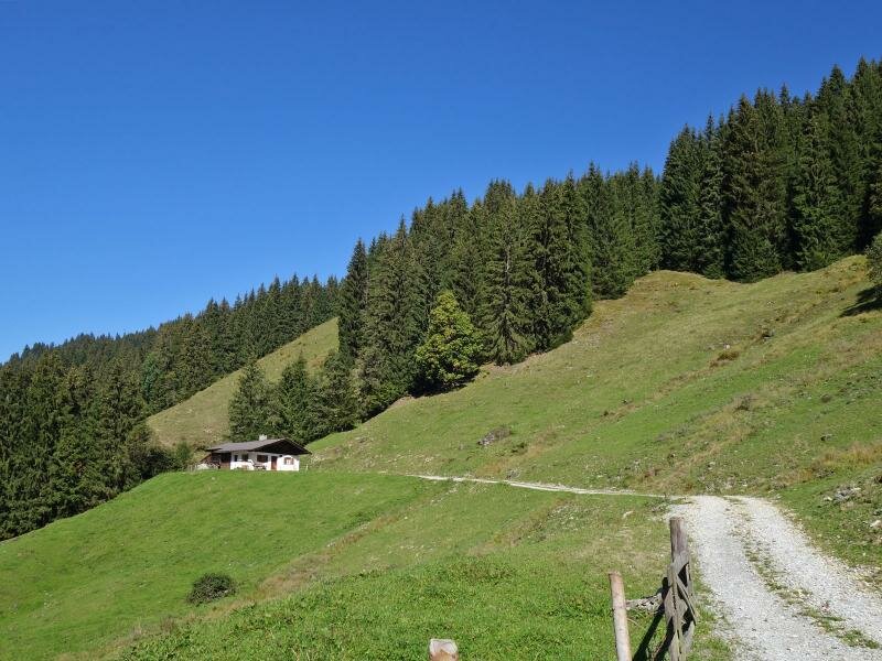 Vom Berggasthof Hochwildalm aus, der auf etwa 1.500 m Meereshöhe liegt, hat man eine tolle Aussicht auf die umgebenden Kitzbühler Alpen. Um wieder zurück zum Ausgangspunkt zu gelangen, geht es am selben Weg wieder bergab.