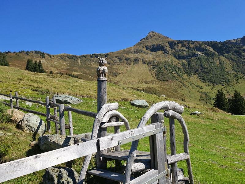 Oberhalb von Aurach bei Kitzbühel liegt, auf 1.570 m Meereshöhe, die Hochwildalm. Ein Aufstieg der gemütlicheren Sorte führt hinauf zu diesem sonnigen Plätzchen.