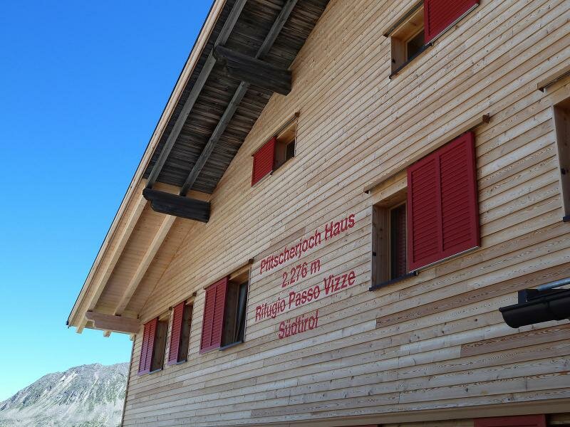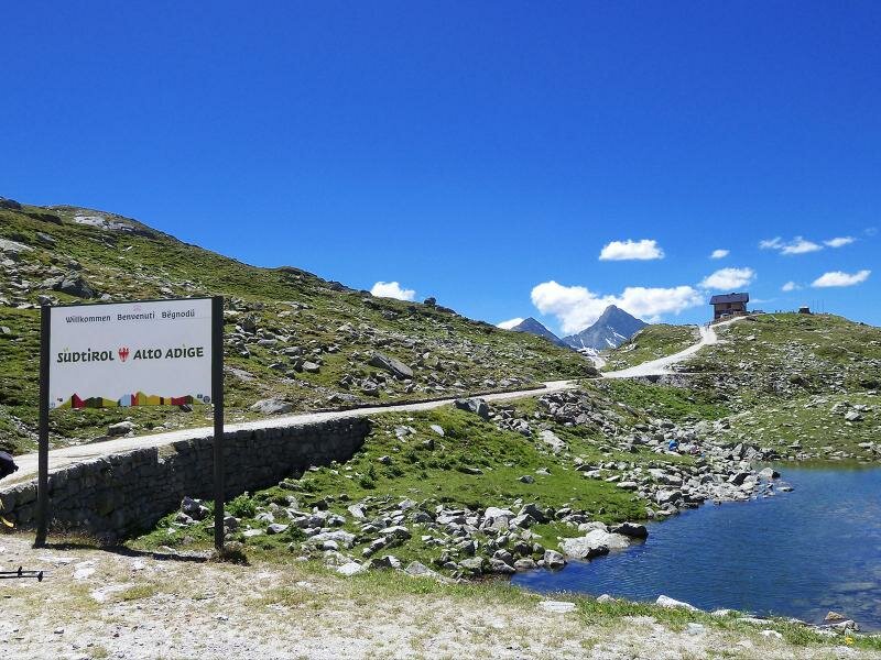 Der letzte Wegabschnitt zum Pfitscher Joch verläuft über eine Schotterstraße. Sie führt über die Wasserscheide am Alpenhauptkamm, über die Grenze nach Südtirol. Gleich nach dem Grenzstein befindet sich die Schutzhütte Pfitscherjoch-Haus (2.276 m ü.d.M.), inmitten einer Platte aus kleinen Bergseen, in denen sich der Himmel spiegelt. Ein kurzes Stück weiter öffnet sich die Sicht ins Südtiroler Pfitschertal.