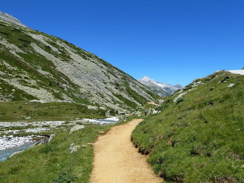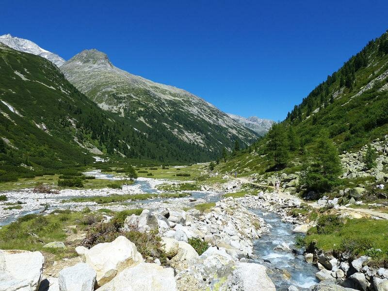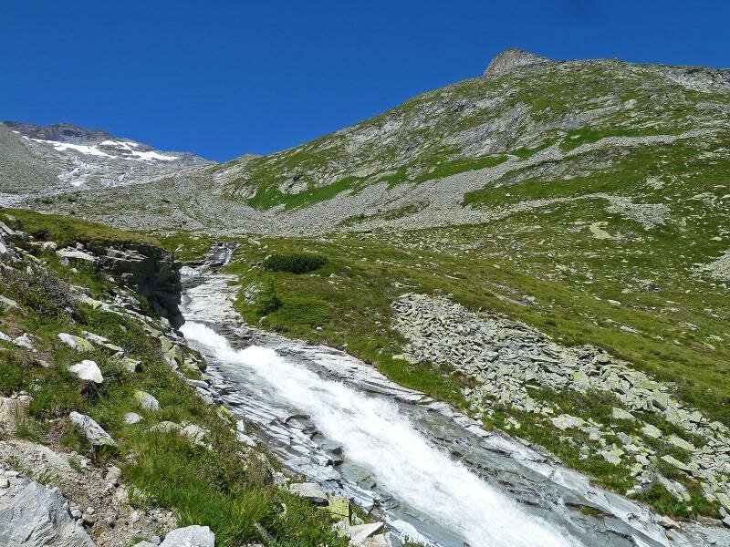 Im Zemmgrund, einem Seitental im hinteren Zillertal, folgen wir dem Lauf des Zamser Baches bis zur Wasserscheide am Alpenhauptkamm, beim bekannten Pfitscherjoch-Haus.