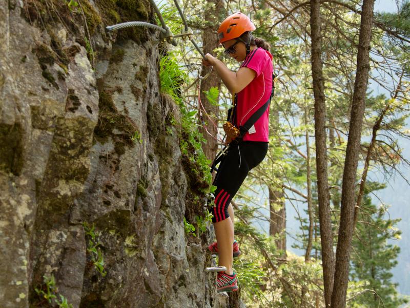 Seile, Netze und Holzelemente befinden sich entlang der Felsen, und 3 Flying Fox-Strecken von bis zu 80 m Länge lassen Besucher durch die Lüfte schweben. Auch Abseil- und Kletterpassagen sind beinhaltet. Begleitet wirst du von den Guides der Alpinschule Alpin-Guide oder Activsport Alpin.