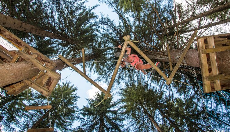 Im größten Hochseilgarten des Zillertales wurden 95 Stationen, davon 15 Kidslines, zwischen den Baumkronen untergebracht