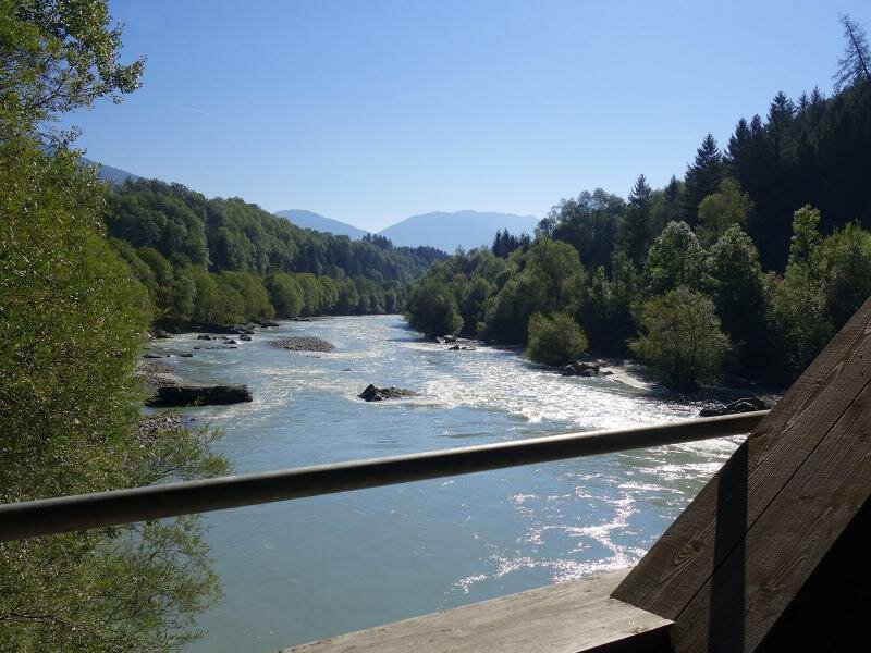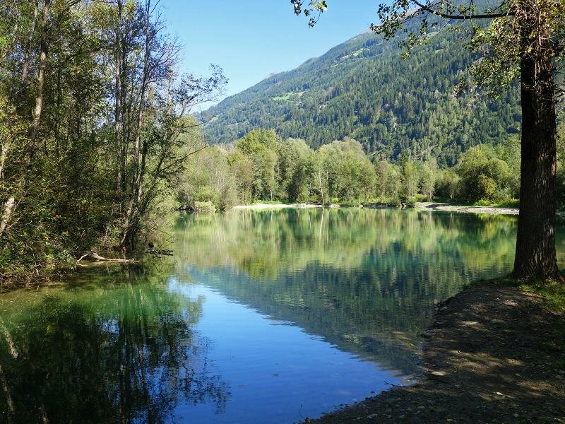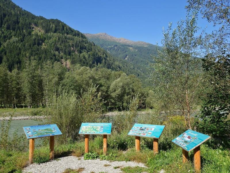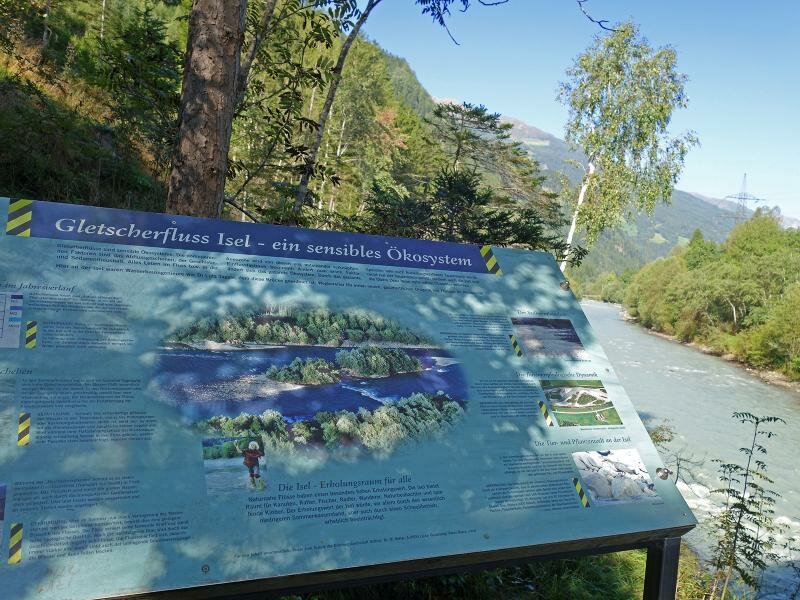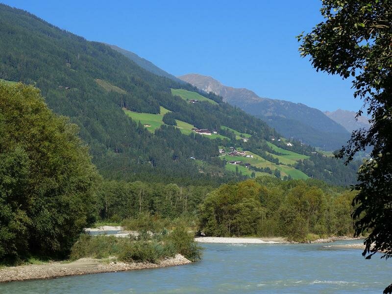 Die Isel ist der Fluss, der den Tiroler Teil des Tauerngebirges entwässert. Wer im Zentrum von Lienz startet und bei Schloss Bruck der Iseltal-Radroute folgt, kommt bald ans Ufer der Isel und wird feststellen, dass sie sogar mehr Wasser transportiert als die Drau, deren Zufluss sie ist. Zwischen Wiesen und Auwald geht es an den Orten Oberlienz und Ainet vorbei bis nach St. Johann im Walde. Hier wird der Radweg unterbrochen und es geht über eine Brücke auf die Westseite des Flusses. Über die Kienburger Landesstraße, eine verkehrsarmen Nebenstraße, gelangt man gemütlich bis nach Huben.