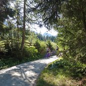 Von dichtem Wald umgeben geht es so durch das Senderstal, vorbei an zwei Kapellen, steilere Abschnitte wechseln mit sanften Steigungen. Auf 1.450 m Höhe liegt die erste Wiesenlichtung bei der Abzweigung zur Salfeins-Alm. Wir radeln weiter bergauf, es wird nochmal steil, bevor wir die Kemater Alm (1.670 m ü.d.M.) erreichen. Sie stellt den Endpunkt der MTB-Route Nr. 555 dar, es besteht aber die Möglichkeit, noch weiter bis hinauf zur Adolf-Pichler-Hütte (1.980 m ü.d.M.) zu radeln. Dieses kurze Stück hat es in sich: Schieben ist notwendig. Im Schlussabschnitt wird die Steigung durch Serpentinen deutlich abgemildert. Das Beste an der Tour ist der herrliche Blick auf die Kalkkögel, der vor allem am Nachmittag bei idealem Lichtverhältnis bezaubert.