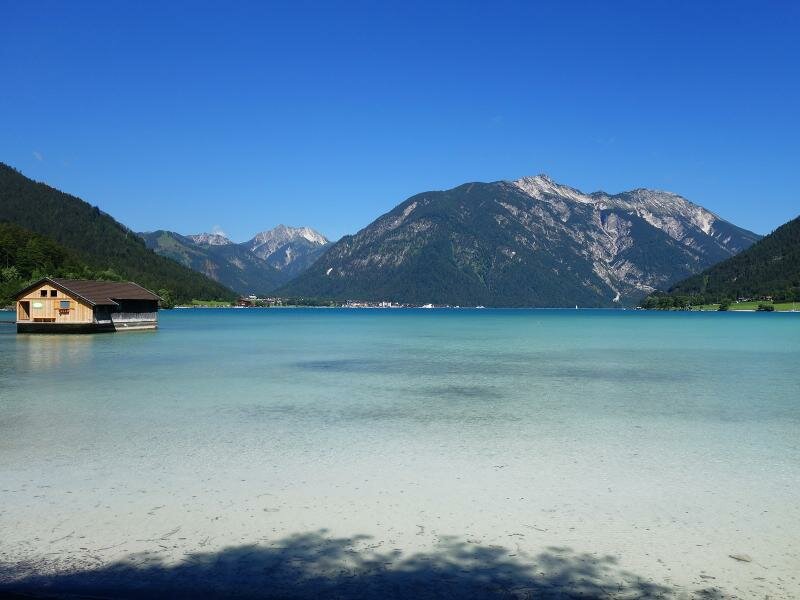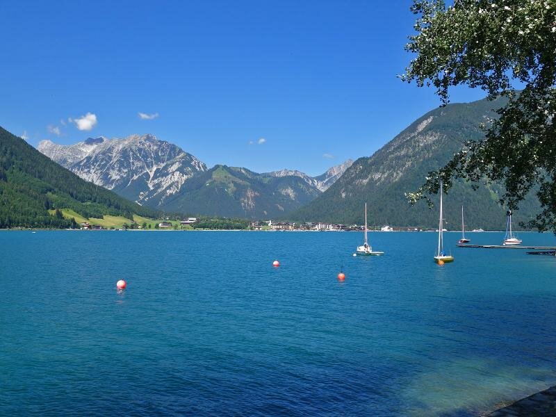 Der See, der an der Ostseite umfahren wird, begleitet die Radroute für etwa 10 km. Immer wieder zieht er die Blicke auf sich und lädt an kleinen Stränden und Aussichtspunkten zum Verweilen ein. Am Nordufer angekommen geht es über Nebenstraßen weiter nach Achenkirch. Wer noch weiter fahren möchte, erreicht über Forststraßen die Ortschaft Achenwald (kurz vor dem Ort geht es nochmals 60 Höhenmeter aufwärts). Die letzten 4 km bis zur Grenze nach Deutschland müssen auf der Bundesstraße B181 zurückgelegt werden. Von dort aus kann man über den Achenpass zum Tegernsee gelangen, oder über das Walchental zum Sylvensteinsee, wo es den Anschluss an den Isar Radweg gibt. Vom knackigen Anstieg am Beginn abgesehen kann der Achensee Radweg als gemütliche Ausflugsroute definiert werden, die auch für Familien geeignet ist.