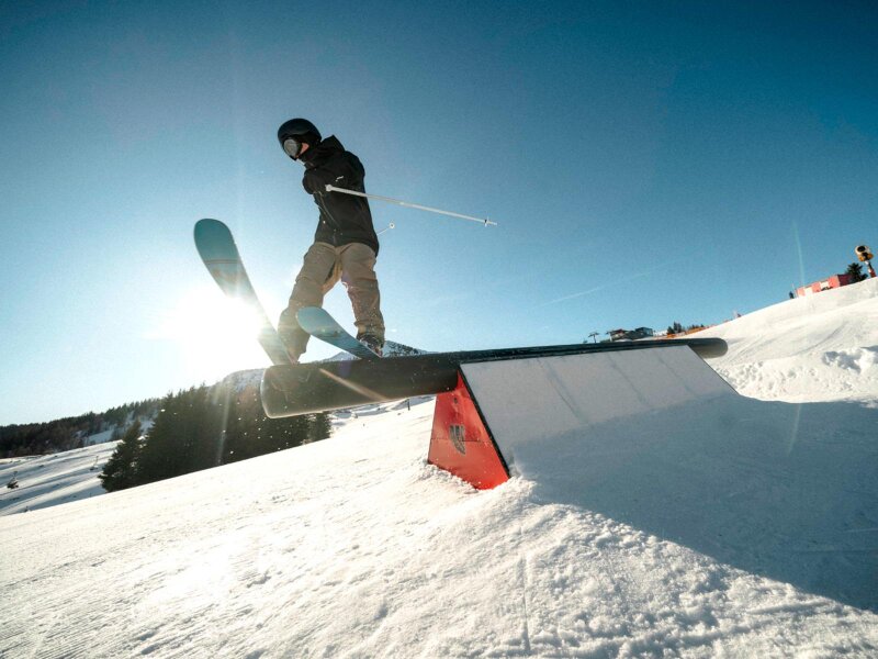 Hoch über Waidring liegt die Steinplatte. Das Skigebiet auf einem sonnigen Plateau in den Kitzbüheler Alpen bietet 42 Pistenkilometer und drei Kilometer Skirouten. Du erreichst es vom Dorfzentrum von Waidring aus mit der 15er-Gondelbahn oder von der Winklmoosalm auf bayerischer Seite - München ist nur eine Autostunde entfernt. Breite Pisten locken Carver an, während Freerider die Tiefschneehänge der Schwarzlofer Alm bevorzugen. Boarder kennen den 1,5 Kilometer langen Snowpark Steinplatte. Er vereint die besten Elemente aus Boardercross und Snowpark, ergänzt durch eine Funslope, und bietet drei Sektionen mit vier Schwierigkeitsgraden.