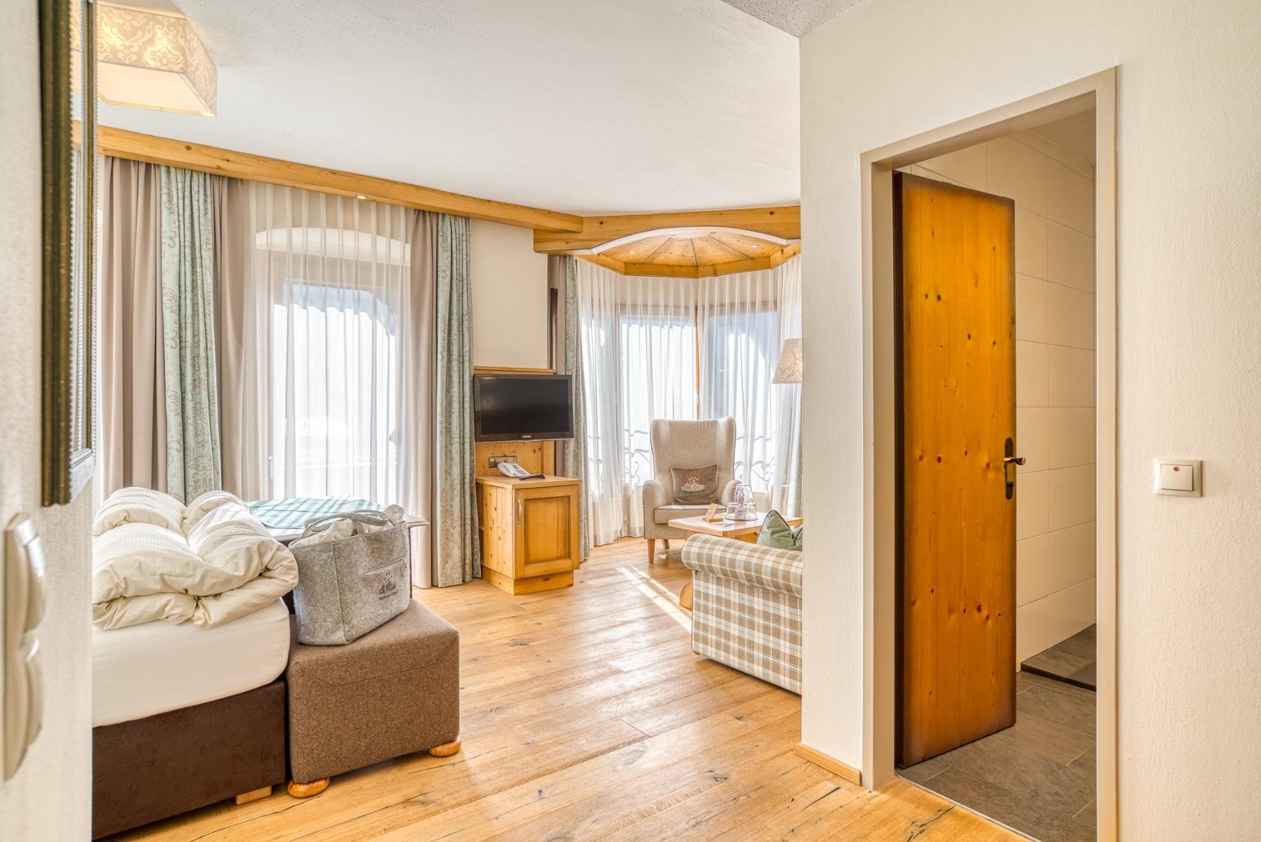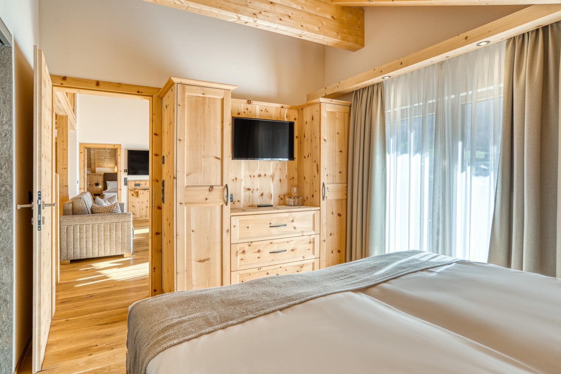 Alle Zimmer und Suiten sind mit unbehandeltem Zirben- oder Lärchenholz ausgestattet und versprechen entspannte und erholsame Stunden.