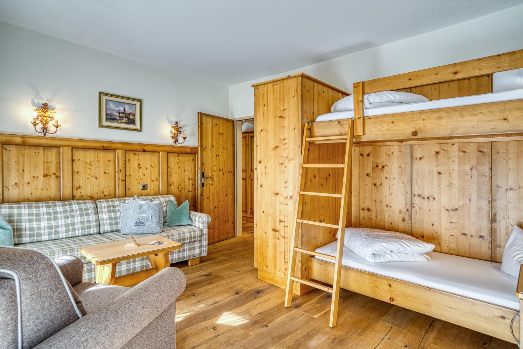 In den Hotelappartements, Familienzimmern und Zirbensuiten wird bei einer 4 Personen-Belegung die 3. und 4. Person mit 50% ermäßigt.